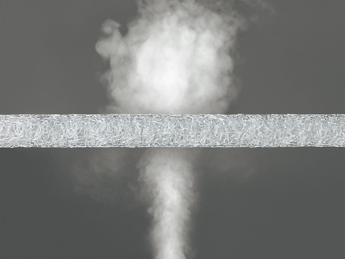 中材の airweave は、独自の技術 airfiber(エアファイバー)で構成され、その素材ひとつひとつをまるで空気を編むように絡み合わせて仕上げられている新次元マットレスパッドです。クッションの中材はエアファイバーの線径をこれまでより細くし、マットレスよりも柔らかな仕上がり。カバーは通気性の良いメッシュカバーに中綿が入り、あたりが柔らかくふわっとした座り心地です。