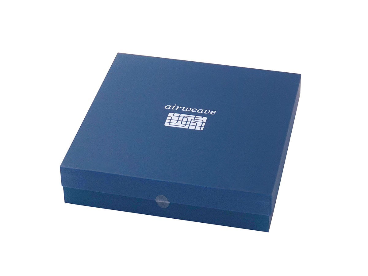 エアウィーヴ特製のギフトボックス入り。ボックスの上に包装紙をかぶせる掛け紙包装でお届けします。