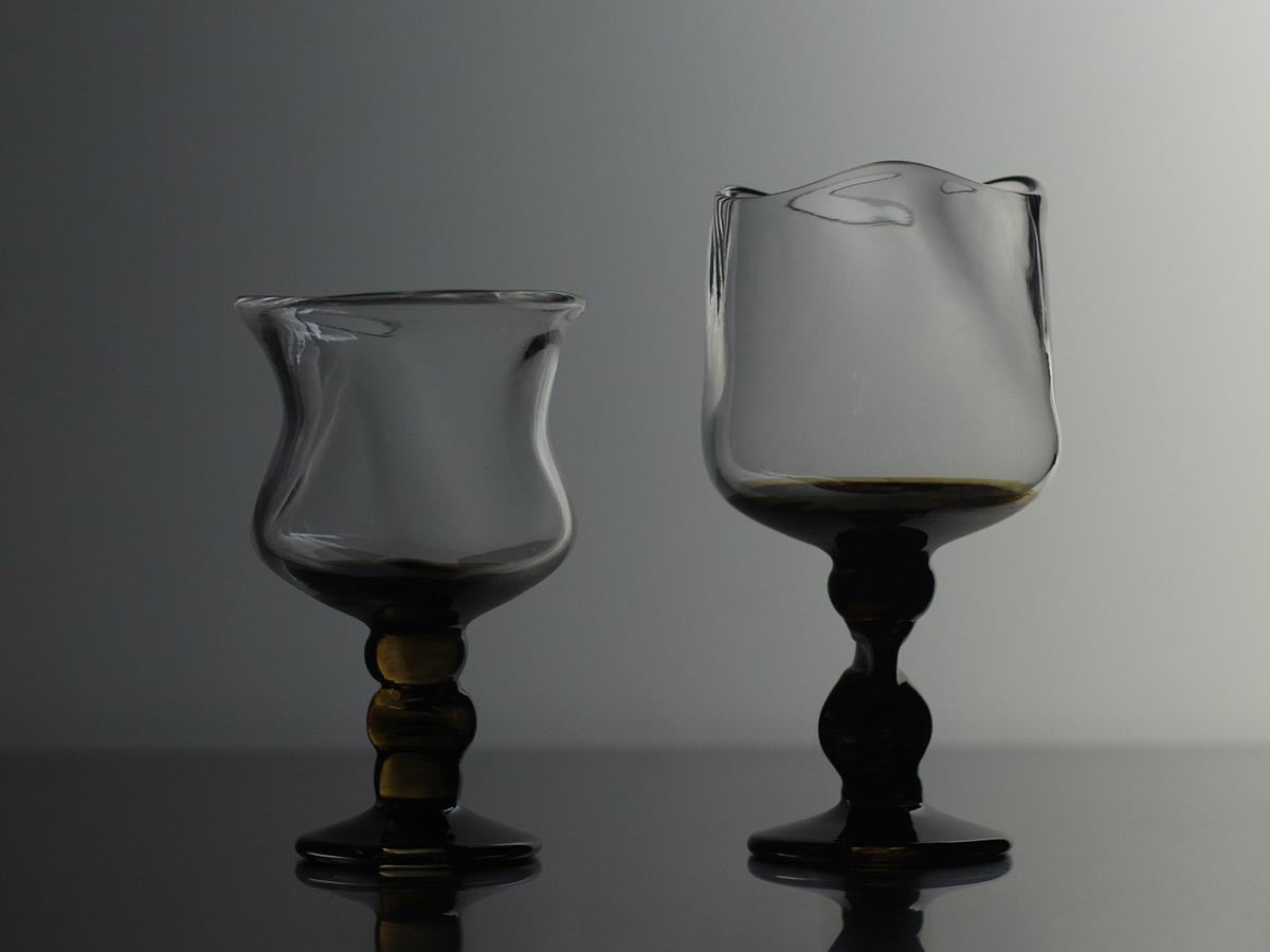 思わず手に取りたくなる有機的な曲線は、高温に熱したガラスに吹き竿を通して息を吹き込みかたちづくる、宙吹きガラス技法によりつくられています。作家(原光弘氏)がひとつひとつ丁寧に吹き上げているため、それぞれが唯一無二の形をしています。