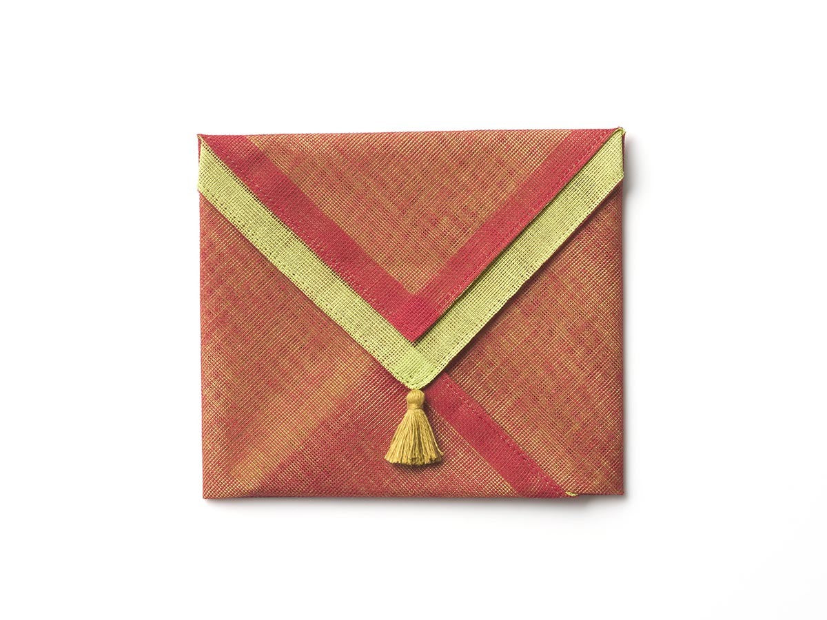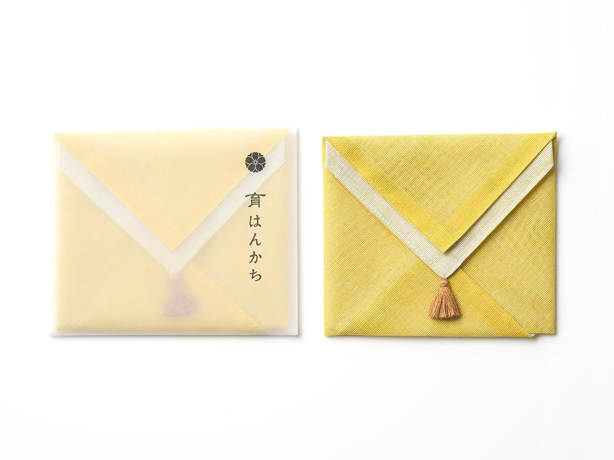 はんかちは1枚ずつ個包装した上で一つのボックスに入れ、赤色の水引バンドで止めています。