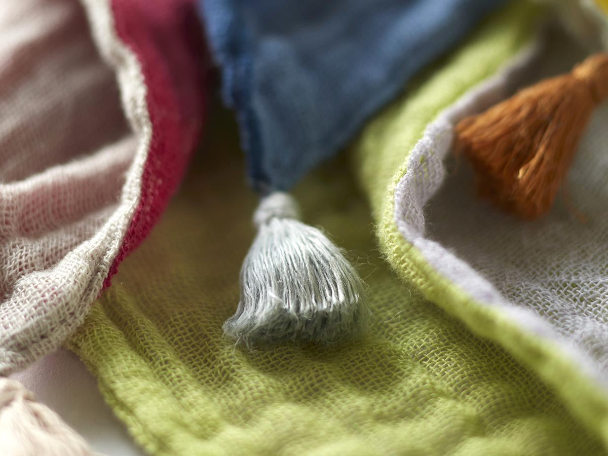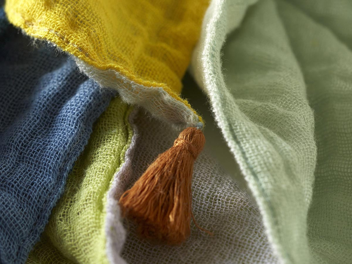 お使いになる前に、最初にぬるま湯で生地に付着している糊を手洗いでしっかり落とします。その後、ネットに入れて洗濯機で2回ほど洗うと使用できる柔らかさになります。
