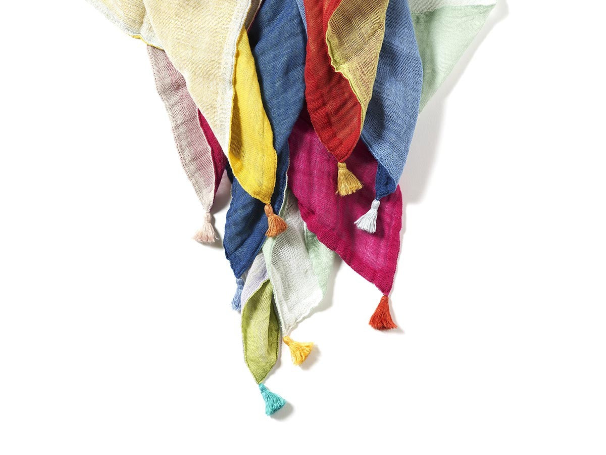 本セットは「緑・黄・朱」の3枚セットです。それぞれが表裏で異なる色でリバーシブルになっているため、その日の気分やファッションに合わせて表になる色をお選びいただけます。