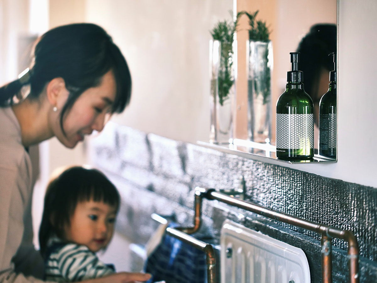 手を洗うたびに気持ちの良いメロディが流れるような香りと手触りのハンドウォッシュ。爽やかなユーカリとベルガモットの後に、金木犀(オスマンサス)・ネロリ・ゼラニウムなどの花の香りが何層にも重なって感じられます。