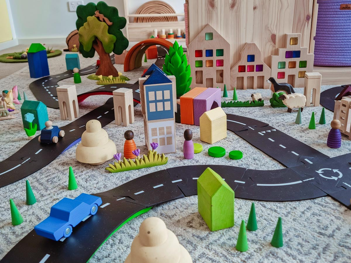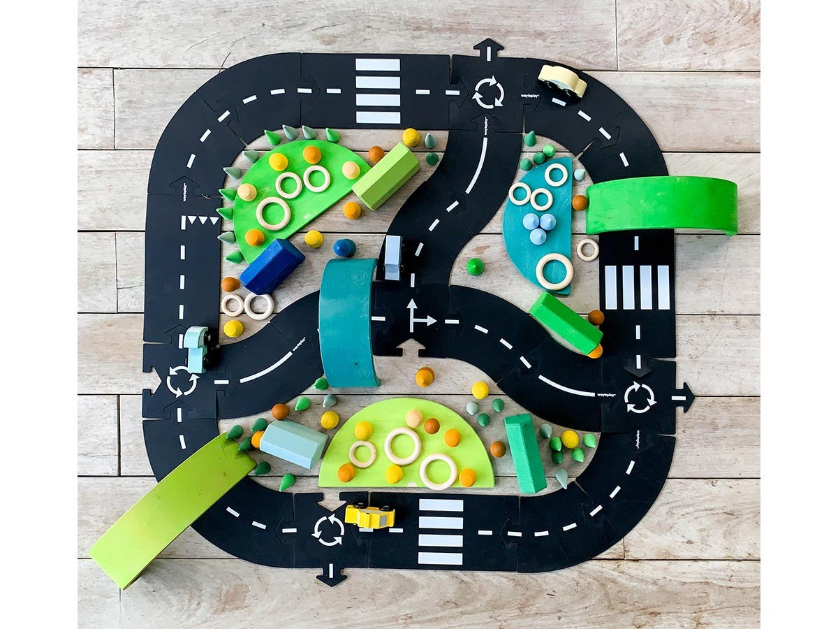 ゴム製の道路パーツは柔軟性があり、カーペット、テーブル、浴室、砂場など、あらゆる場所に設置できます。防水のため、汚れた際も洗うことができます。ご家庭だけでなく、保育施設や商業施設のキッズスペースにもおすすめです。