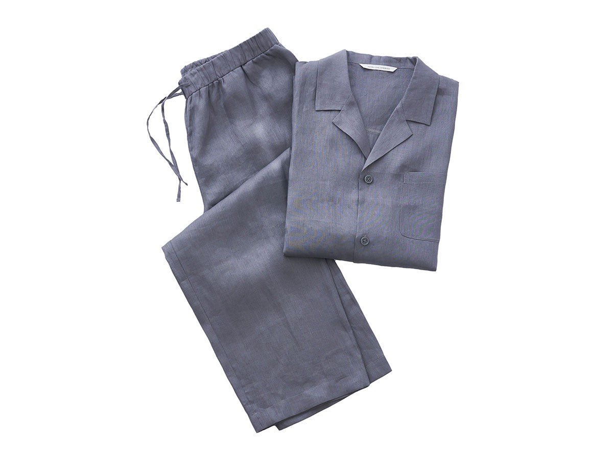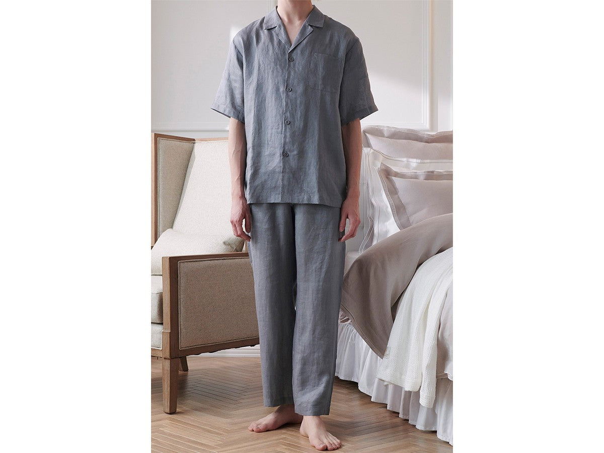 リネン 半袖パジャマセット(ダークグレー / ブルー)