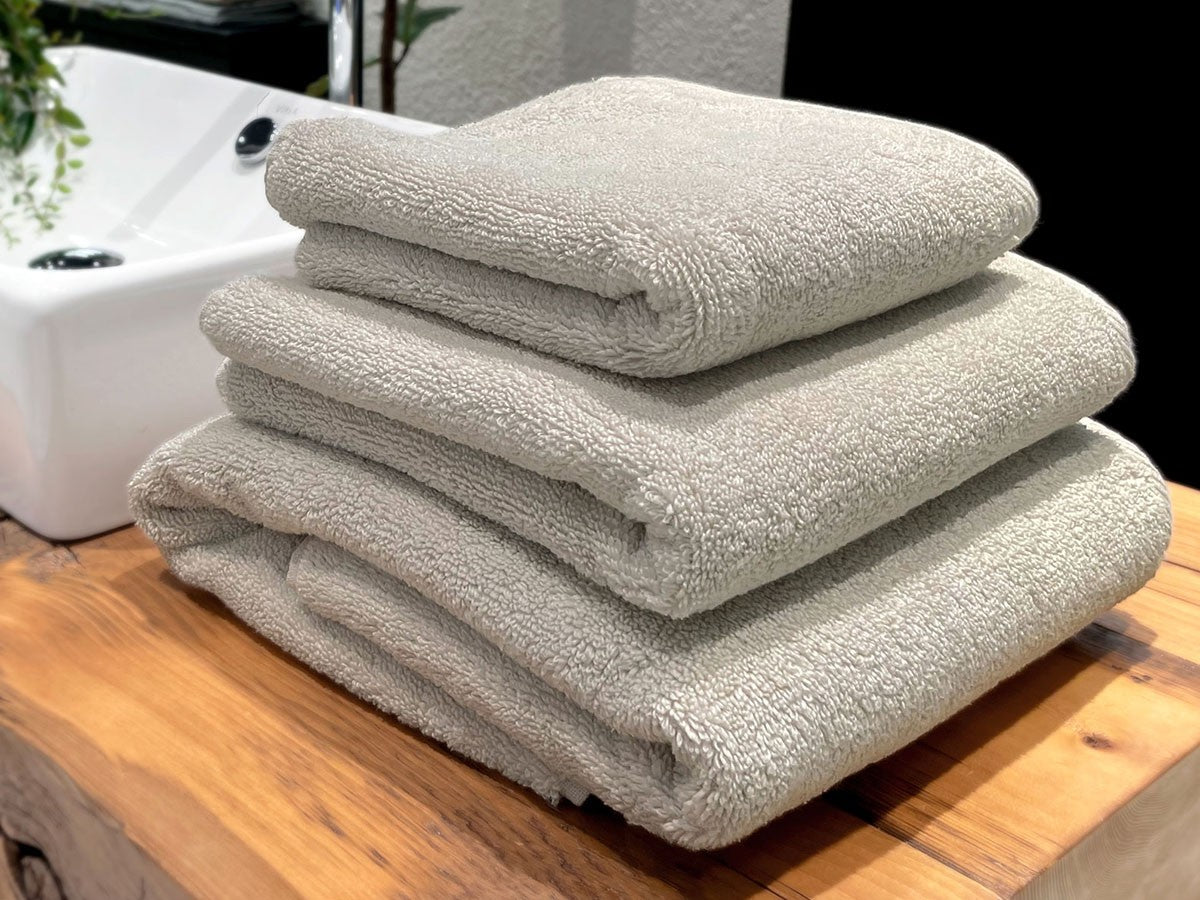 地球上の綿花のうち、わずか5%しか生産されない希少価値の高いインド産の超長綿を100%使用し、高い吸水性とふっくら柔らかな肌触りで世界40ヶ国で愛されています。少しだけ撚っている甘撚り(=弱撚糸)を使用し、パイル一つひとつの形状を保ったまま空気を含むため、風合いが柔らかく毛羽落ちの心配が少ない仕様です。洗うたびに柔らかく、しなやかな使い心地を実感できます。
