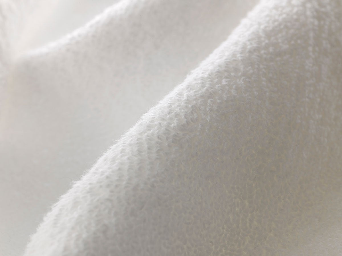 地球上の綿花のうち、わずか5%しか生産されない希少価値の高いインド産の超長綿を100%使用し、高い吸水性とふっくら柔らかな肌触りで世界40ヶ国で愛されています。少しだけ撚っている甘撚り(=弱撚糸)を使用し、パイル一つひとつの形状を保ったまま空気を含むため、風合いが柔らかく毛羽落ちの心配が少ない仕様です。洗うたびに柔らかく、しなやかな使い心地を実感できます。