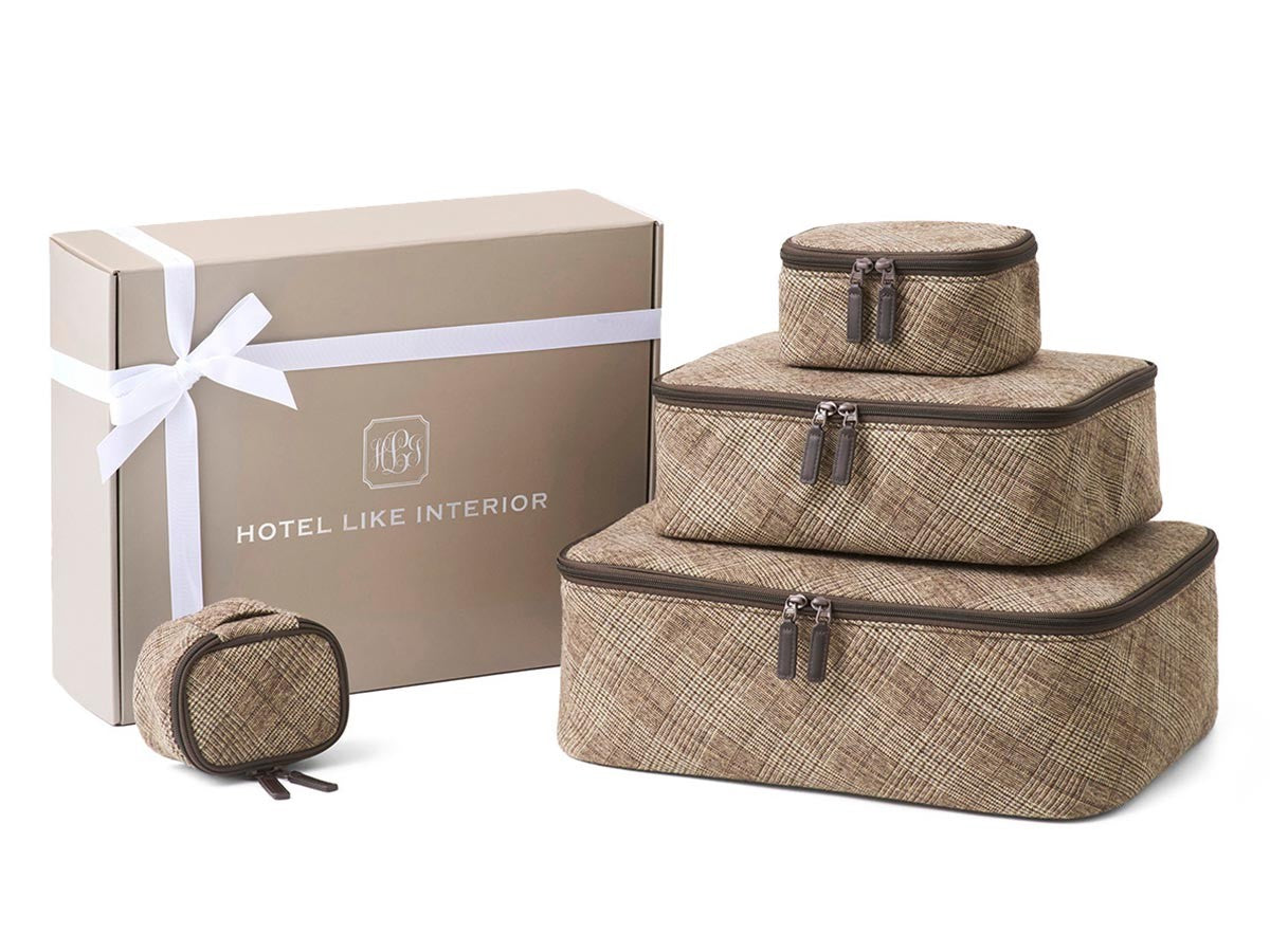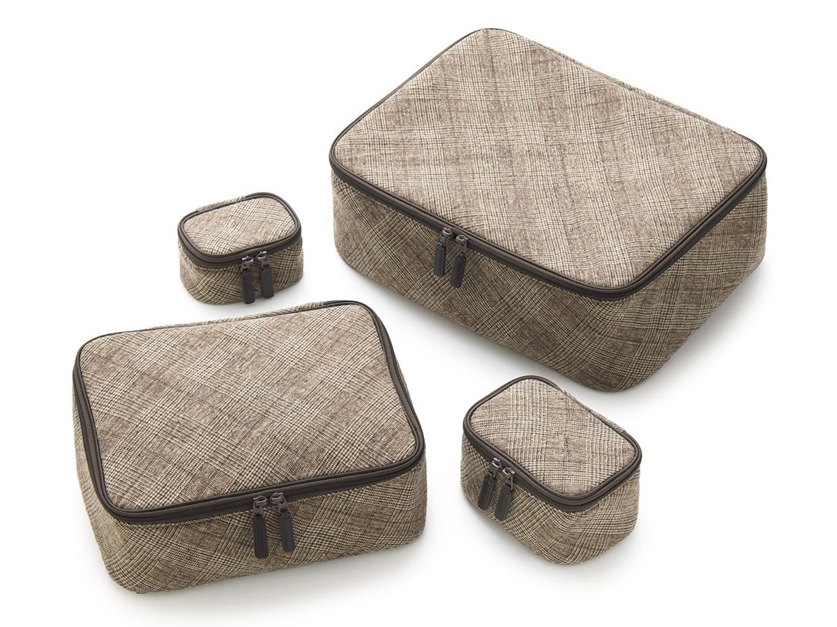 ポッシュプレイドポーチ 4点セット(サンド × ブラウン)