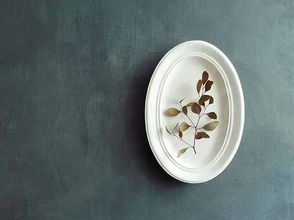 額縁をイメージしてデザインされたレリーフがくっきりと浮かび上がる、精緻な形が特徴のオーバルプレート。フリーハンドの揺らぎを生かした線やカーブが、かっちりし過ぎない柔らかな印象を与えます。 リムの内側も大きめで深さもあるため、取り分けて食べるサラダからメインディッシュまで、とても使いやすいプレートです。楕円形が食卓のアクセントにもなって、テーブルコーディネートが楽しくなります。