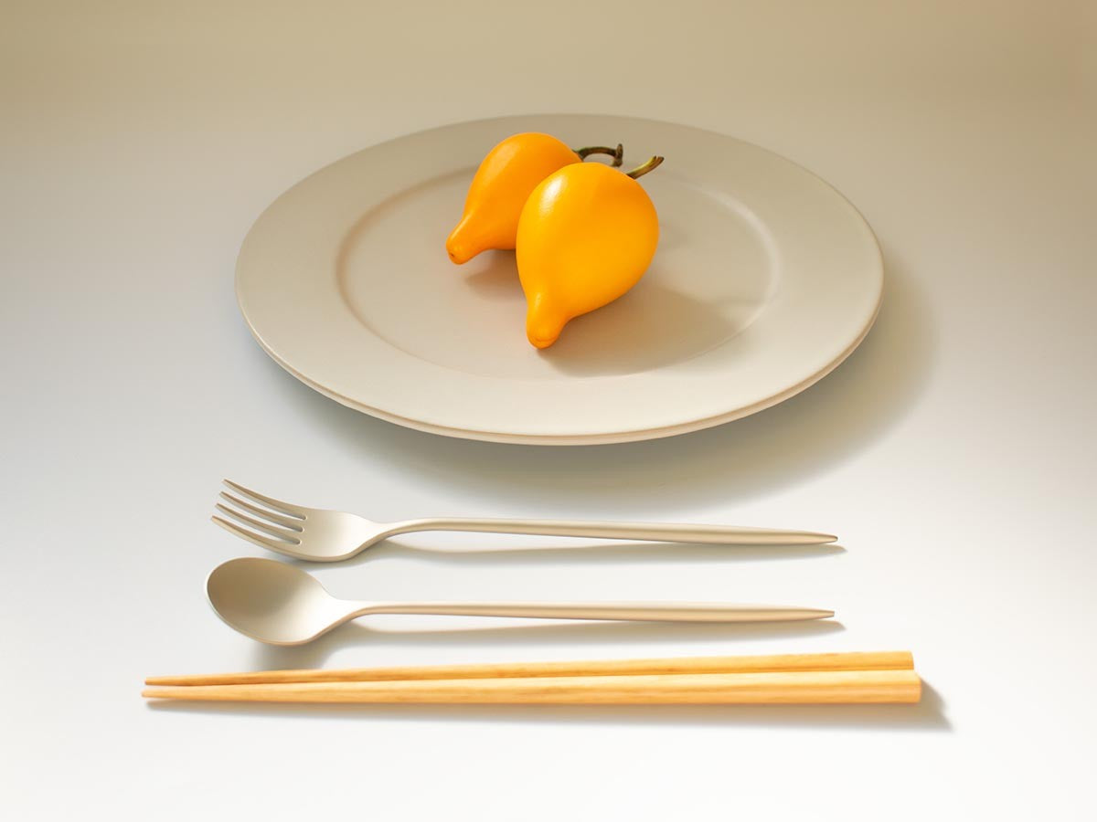 塗装や染色、コーティングを一切使用せず、「特殊マット処理」と呼ばれる技術を用いて、表面に微細な凹凸をつけることで色を表現しています。マットな質感のホワイトは、爽やかで洗練された印象。しっとりとした口当たりで、いつもとはひと味違うテーブルコーディネートをお楽しみいただけます。